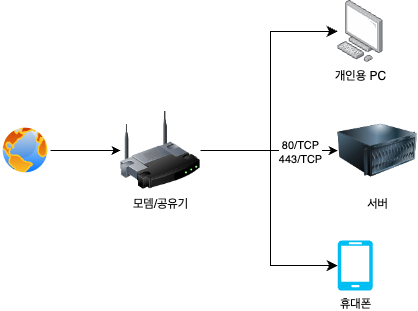 공유기에서 서버로 TCP 80/443 포트가 모두 서버로 향하게 설정하는 것이 필요하다. 또한, 서버에서도 npm이 직접 80과 443번 포트를 점유할 수 있도록 설정해야한다. (사용하는 OS환경에 따라 80/443 포트를 이용하기 위해서는 root 권한이 필요할 수 있다.)